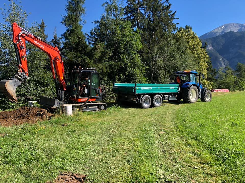 Neben dem Unternehmen wird auch noch eine kleine Landwirtschaft betrieben. Dadurch sind wir perfekt für Arbeiten in der Grünlandwirtschaft gerüstet. Vor allem im Bereich Rundballen pressen im Grünland sind wir sehr gut ausgestattet.